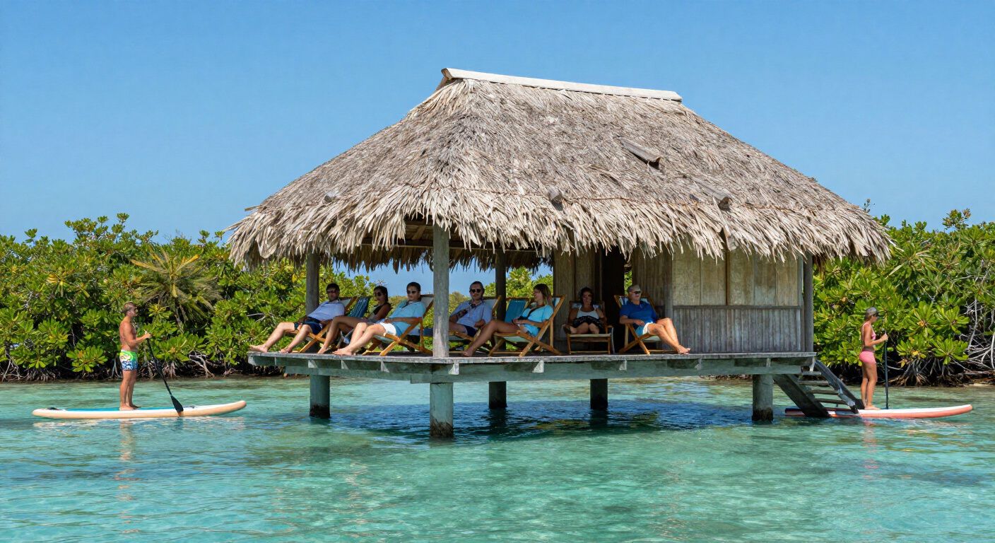 Spend your cruise day at a peaceful overwater palapa surrounded by turquoise water and mangroves. Relax, explore nature, enjoy food and drinks, and move at your own pace without crowds or pressure.